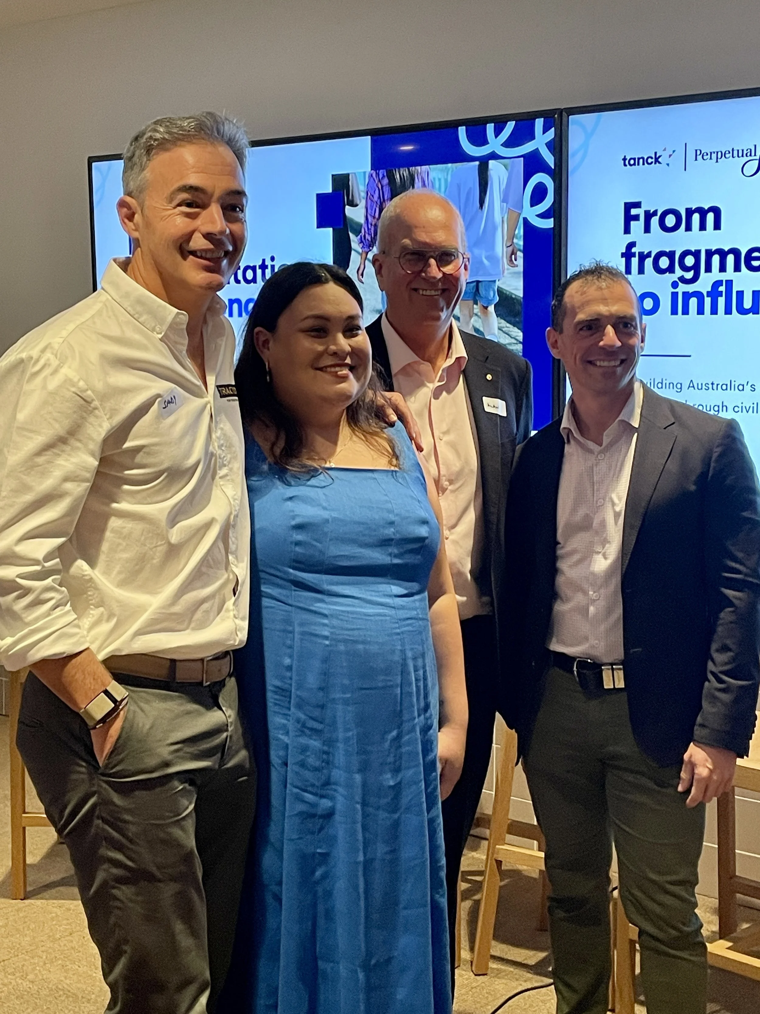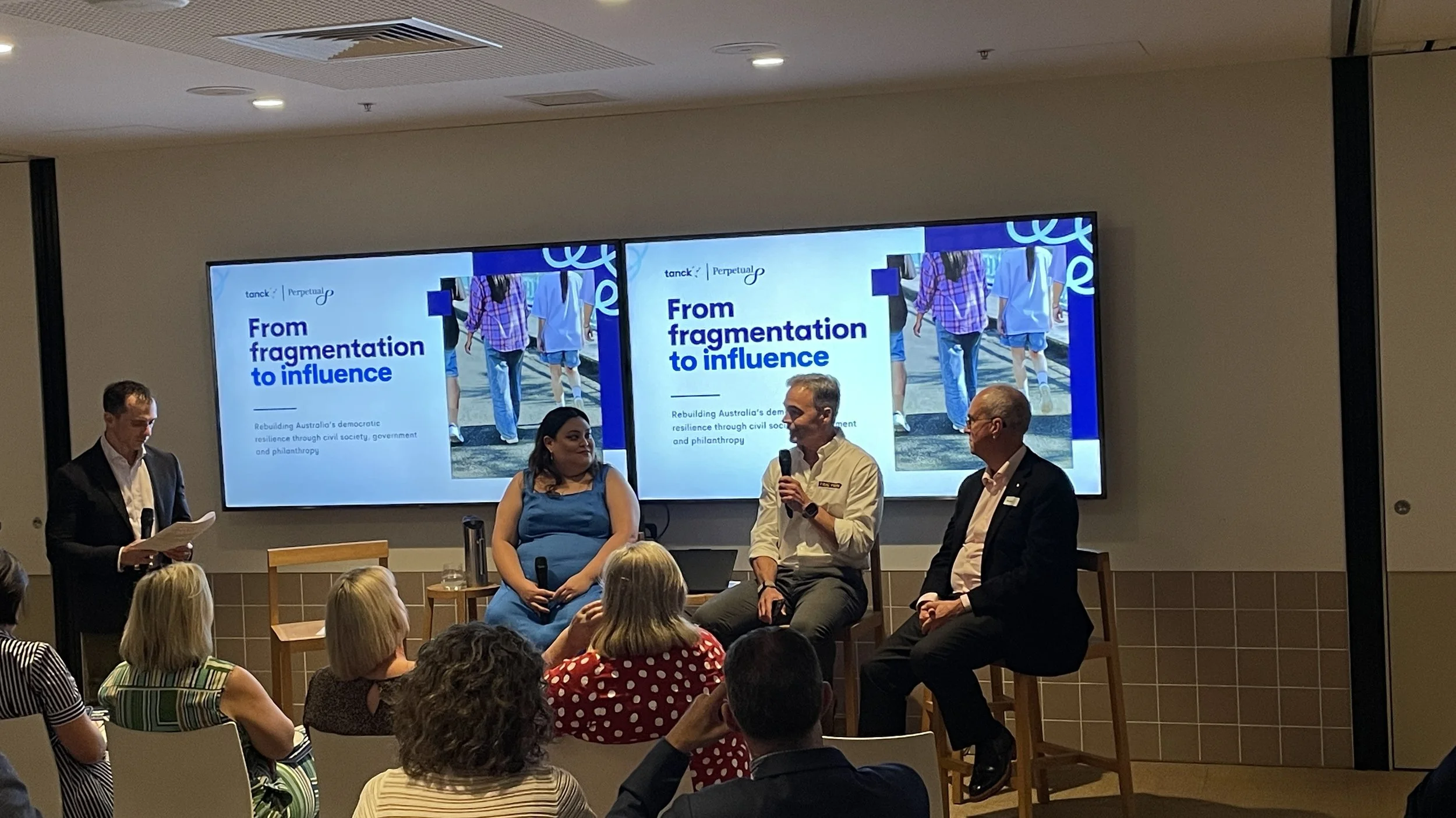 The discussion focused on a new whitepaper by Tanck and Perpetual Limited, From Fragmentation to Influence: Rebuilding Australia’s Democratic Resilience.